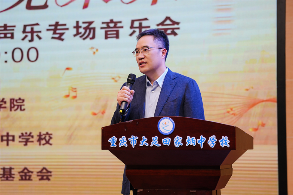 廖元亮副秘书长在发言中回顾了“‘音 ’你而美,‘育 ’见未来”项目的推进历程,强调其在陶冶学生情操、普及审美教育方面的重要价值,并表示基金会将持续支持此类公益艺术活动。